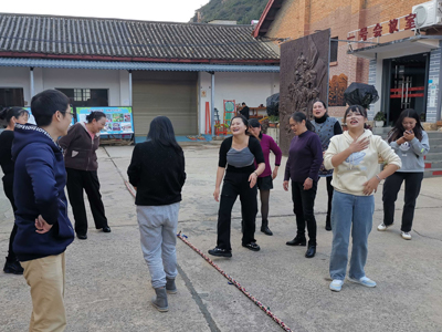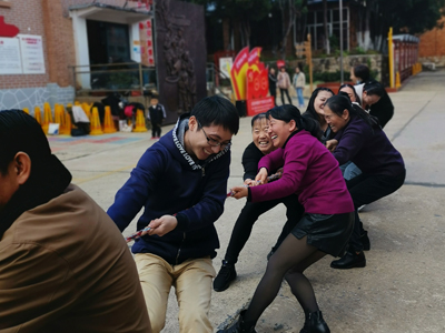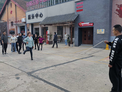 講解員是個可愛又多才多藝的大叔,剛在他的帶領(lǐng)下參觀完一場“視覺盛宴”,立馬又被他拉入了一場的“歌舞盛宴”。就地圍攏,廣播體操、民族舞應(yīng)接不暇,載歌載舞,盡情釋放活力。跳繩、拔河、踩高蹺、打陀螺各種趣味活動也讓大家歡快不已,整個場面熱鬧非凡,快樂中拉進(jìn)了彼此間的距離。